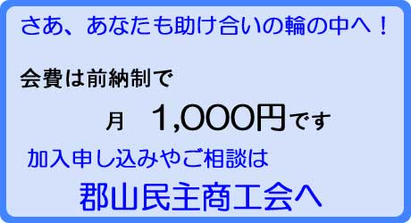 | 3:自前の共済 | 「一人はみんなのために、みんなは一人のために」加入者どうしで会費を出しあい運営する自前の共済です。 会費で財政を築き、中小業者にふさわしいものに発展させています。